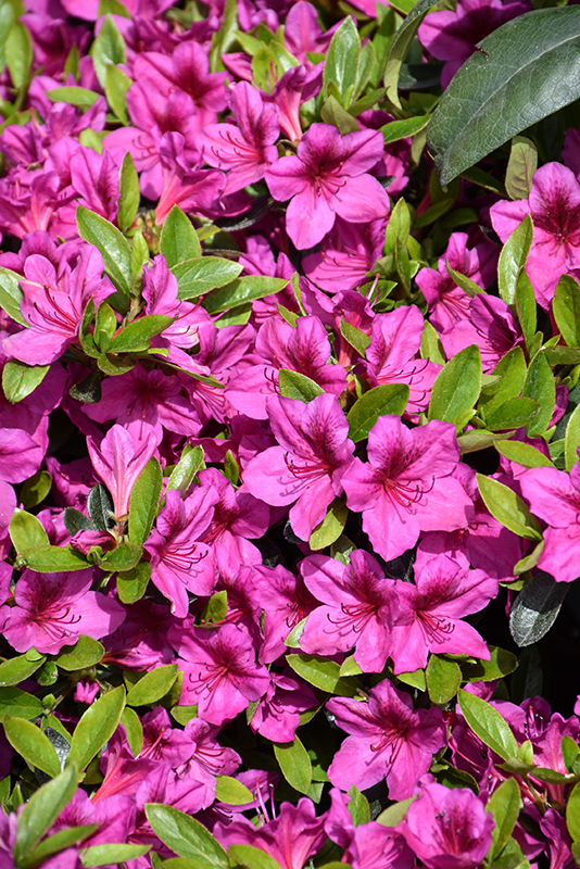 Vivid purple blooms with scarlet spots cover this compact, vigorous azalea in mid-spring; dark green glossy foliage emerges light green-yellow; needs highly acidic and organic soil that is well drained