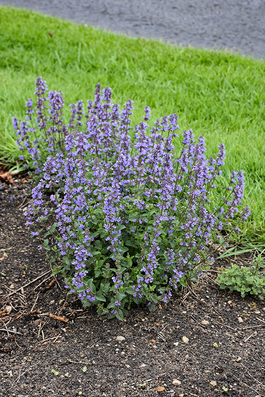Purrsian Blue Catmint will grow to be about 13 inches tall at maturity extending to 18 inches tall with the flowers, with a spread of 30 inches. Its foliage tends to remain dense right to the ground, not requiring facer plants in front. It grows at a fast rate, and under ideal conditions can be expected to live for approximately 10 years. As an herbaceous perennial, this plant will usually die back to the crown each winter, and will regrow from the base each spring. Be careful not to disturb the crown in late winter when it may not be readily seen!