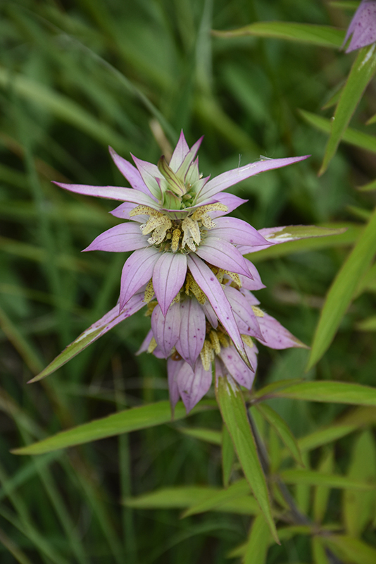 This wildflower variety produces pretty clusters of yellow flowers with purple spots, surrounded by pinkish-purple leafy bracts; best in well drained, dry to medium sandy soil; needs good air circulation; great for massing along borders and naturalizing