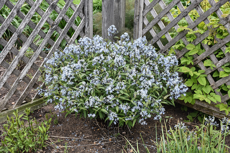 Storm Cloud Bluestar's attractive narrow leaves are olive green in color with distinctive silver veins on a plant with a round habit of growth. As an added bonus, the foliage turns a gorgeous yellow in the fall. It features showy clusters of powder blue star-shaped flowers at the ends of the stems from late spring to early summer. The flowers are excellent for cutting. The black stems are very colorful and add to the overall interest of the plant.