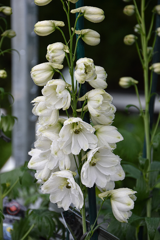 Guardian White Larkspur is a fine choice for the garden, but it is also a good selection for planting in outdoor pots and containers. With its upright habit of growth, it is best suited for use as a 'thriller' in the 'spiller-thriller-filler' container combination; plant it near the center of the pot, surrounded by smaller plants and those that spill over the edges. It is even sizeable enough that it can be grown alone in a suitable container. Note that when growing plants in outdoor containers and baskets, they may require more frequent waterings than they would in the yard or garden.